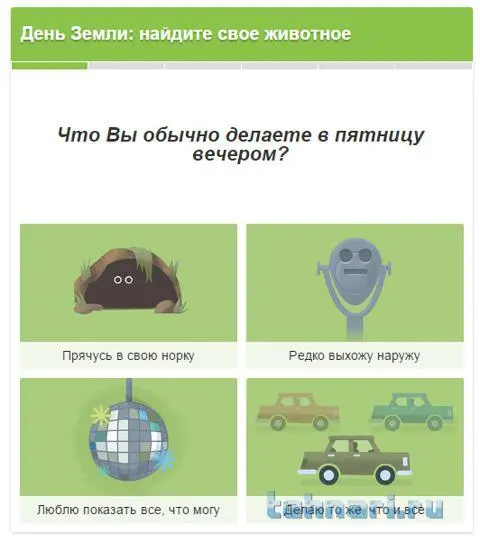 Немного позитива от Гугл. Пройдите викторину и узнаете какое животное вам подходит ))) Перейти можно нажав на ссылку вверху!