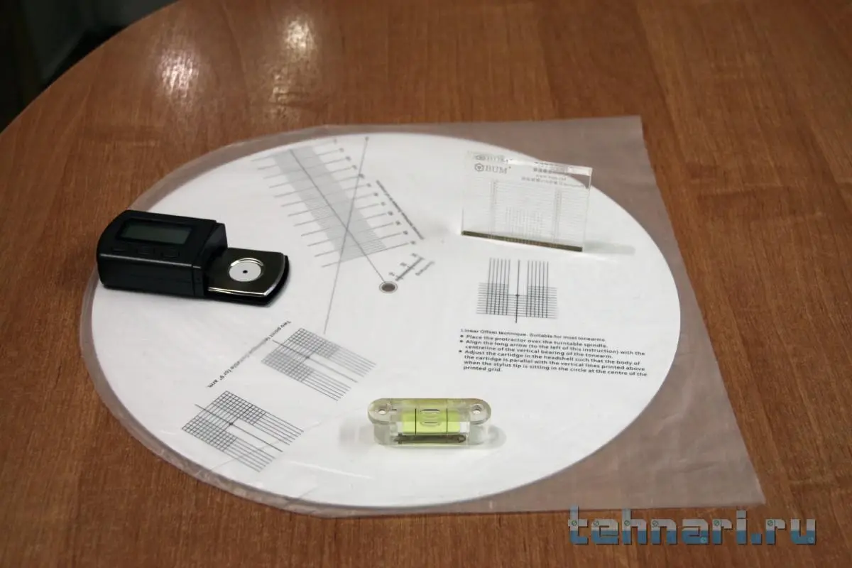Что б не было проблем нужно обзавестись , хотя бы по-минимуму , не хитрым инструментом . В первую очередь выставить вертушку по уровню , потом иглу на весы . Дальше , по шаблонам , выставить катридж с иголкой . По обратной стороне диска(на фото) пытаться отрегулировать антискейтинг , можно хоть до посинения . При этом ни иголке , ни диску ничего не будет . Диск то ли акриловый , то ли поликарбонатный , очень скользкий . Про измерительную пластинку , так и вообще молчу , но это уже потом .