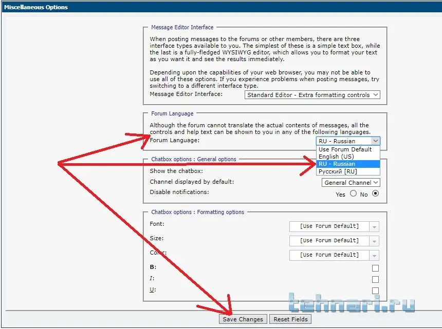 User CP --> Edit Options --> Forum Language --> RU Russian (Важно. Выбрать именно RU Russian, а не Русский (RU)) --> Save Change