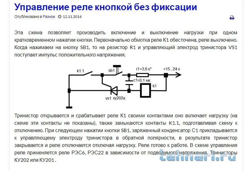 Но, эту схему, если применить высоковольтный тиристор и реле с обмоткой на 220 Вольт, поставить дополнительный диод для обеспечения схемы ПОСТОЯНКОЙ, можно обойтись только сетью 220 Вольт, без понижающего трансформатора и прочей приблуды, включая контактами реле ( магнитного пускателя) уже, оперируя в сети переменки.