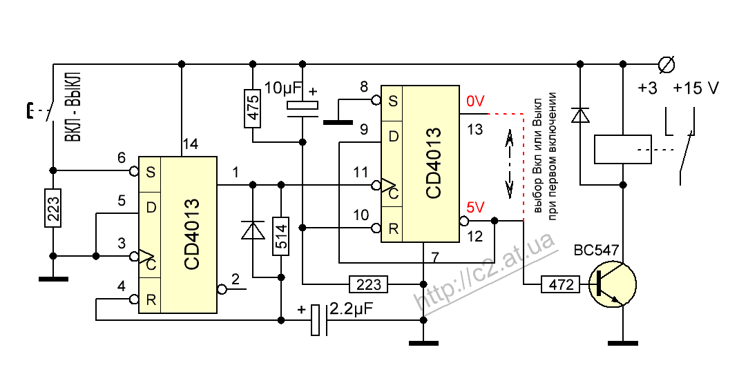 Включение-выключение одной кнопкой