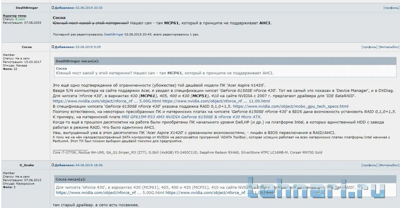 Добрый день ! Помогите решить мою проблему. Хотел "оживить" довольно старый системный блок установкой на него SSD. Знаю, что для скорости работы SSD необходимо перед загрузкой ОС включить в BIOS режим AHCI, но не могу найти его включение. Системная плата от ECS MCP 61M-M3(v7.1) BIOS AMI 080015,20.05.2010.