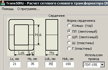 Ширина у тебя 100. При этом окно 35 и толщина сердечника (Ls) тоже 35. Итого: 35+35+35=105