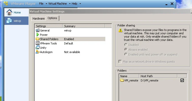VMWare: как расшарить каталог host-Windows для вируальной WinXP?