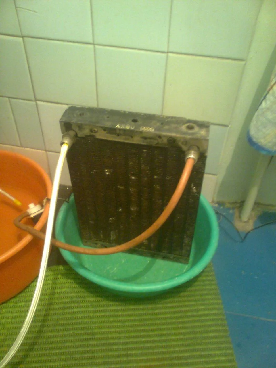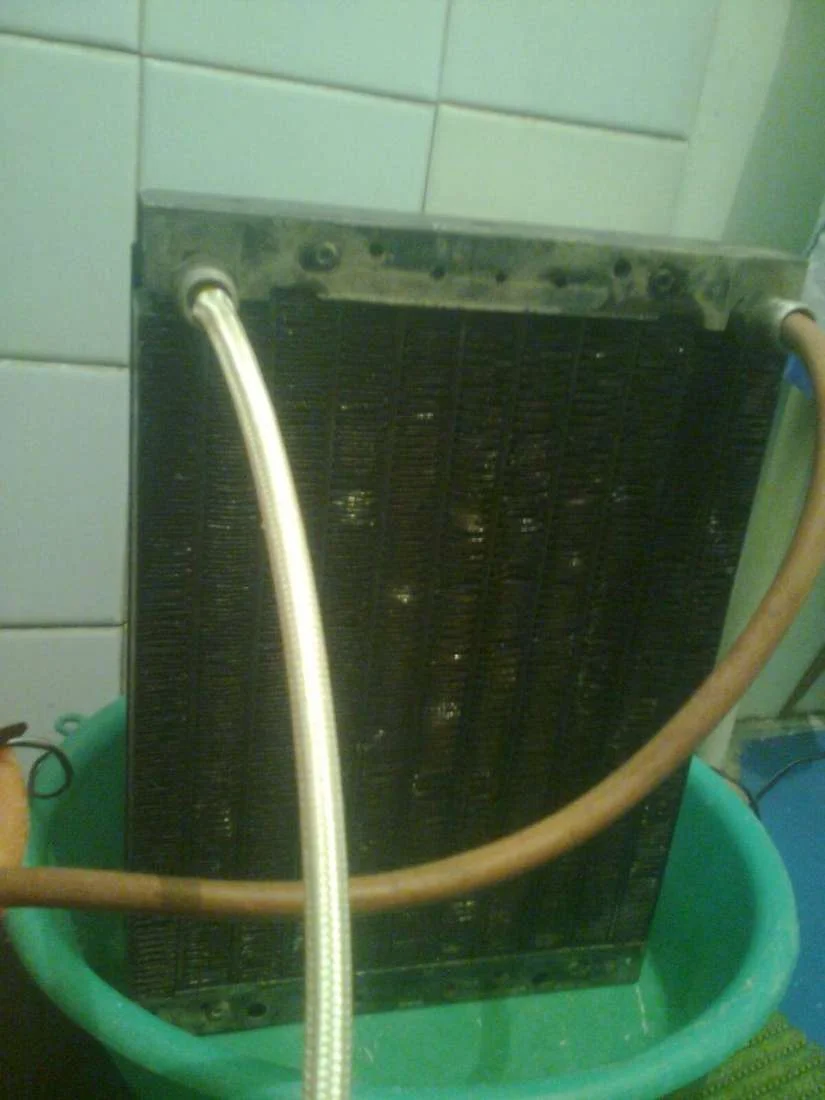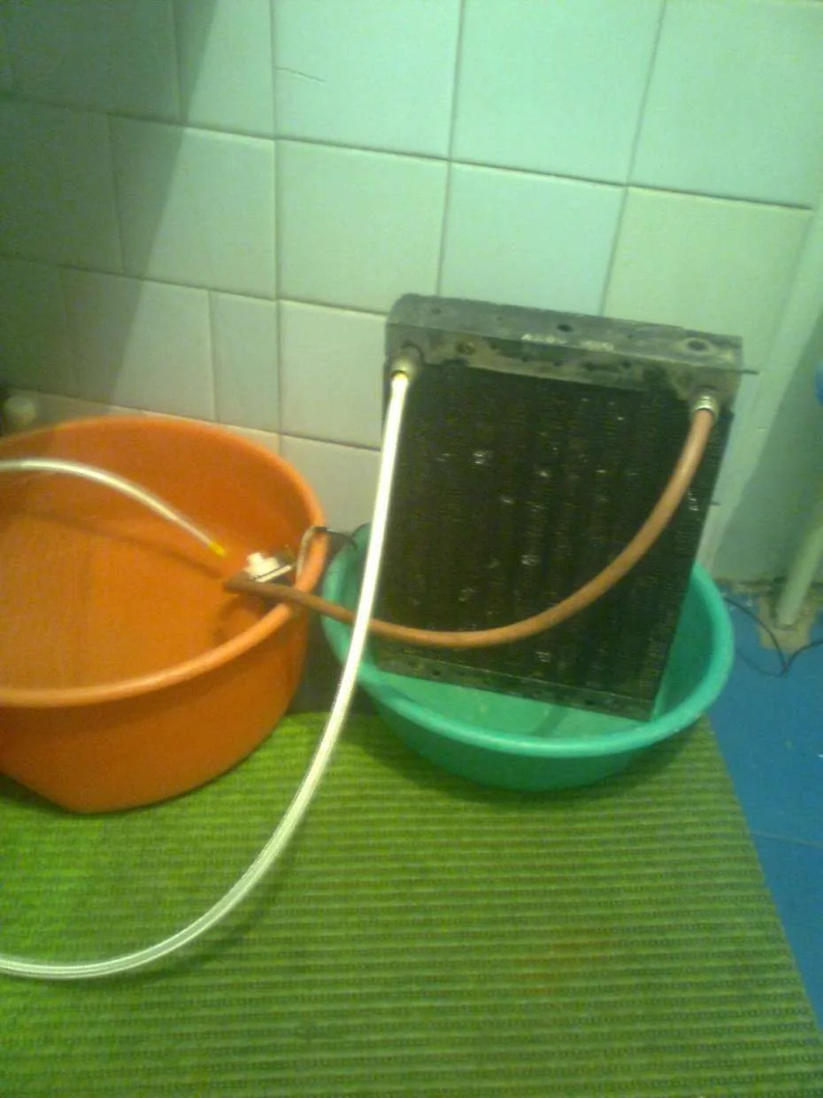 Нашёл я всётаки штуцеры, но они были чуть большеваты и пришлось их подпилить.Нашёл в гараже радитор автомобильный, вычистил его, проверил протечек нет. Вчера приклеил штуцеры начал сегодня проверять, а водоблок весь дырявый. Разобрал его, отчистил от герметика и приклеил на секундный момент. Щас подсохнет клей и пойду проверю систему в сборе.