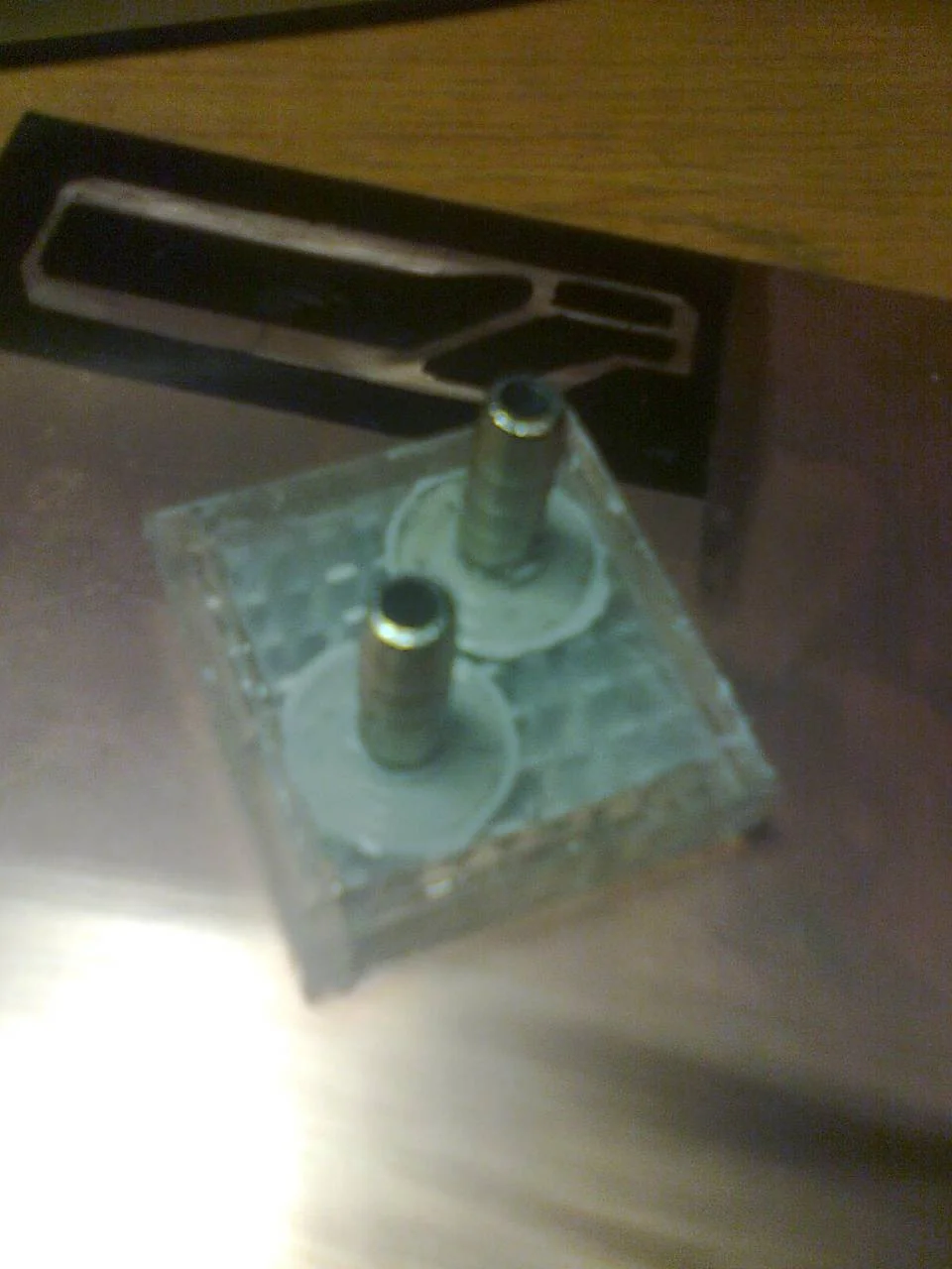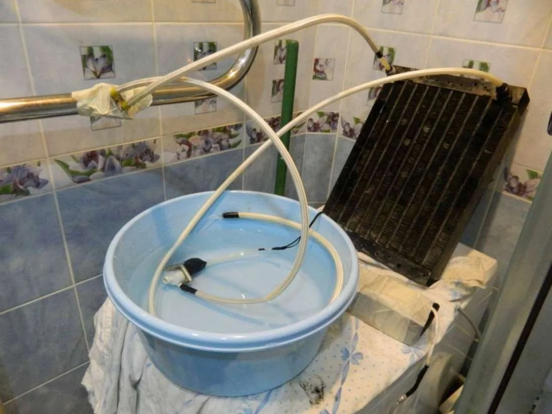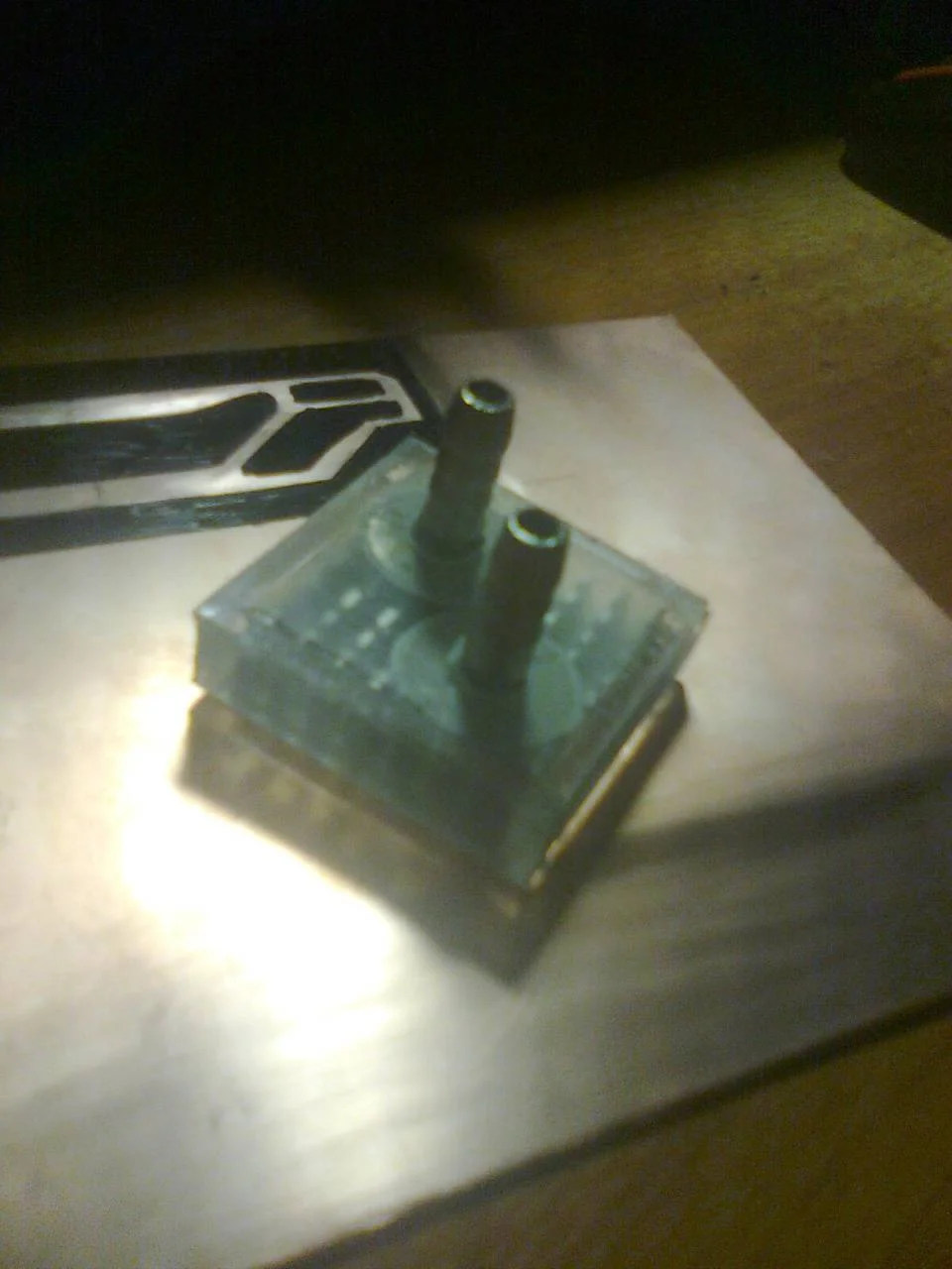 Нашёл я всётаки штуцеры, но они были чуть большеваты и пришлось их подпилить.Нашёл в гараже радитор автомобильный, вычистил его, проверил протечек нет. Вчера приклеил штуцеры начал сегодня проверять, а водоблок весь дырявый. Разобрал его, отчистил от герметика и приклеил на секундный момент. Щас подсохнет клей и пойду проверю систему в сборе.
