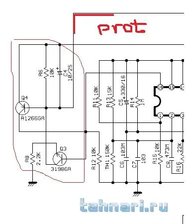 Объясните как работает данный узел.И как рассчитать делитель в базе транзистора чтоб порог срабатывания защиты был другой. Напалил кучу транзелей толку нет.В схеме есть ошибки которые я уже исправил.Если я правильно понимаю сигнал приходит на триггер который блокирует ШИМ.