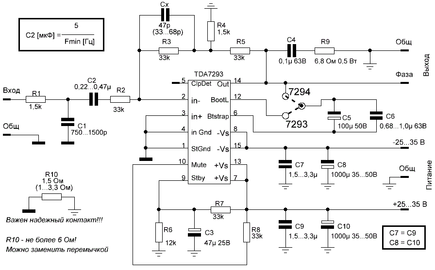 добрыи день вчера сжег вход boottrap 11 вывод тда7294 после чего микруха перестала усиливать сигнал, решил собрать по новои схеме мф2 от аудиокилера но есть и от линкора тоже с инвертируюшем оос. кто подскажет что лучше будет (уже перематываю транс с +-42в до 36в -может по этому не получалось 50ват с них выжать)