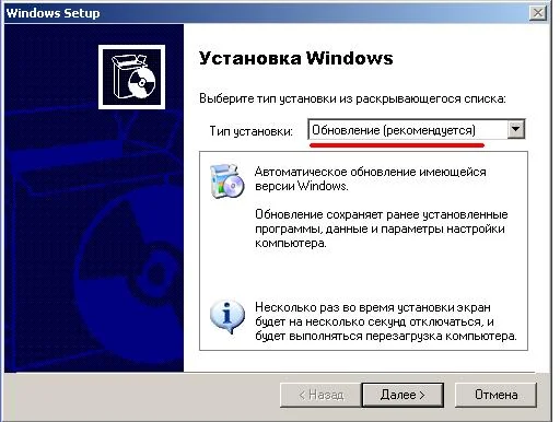 Подскажите пожалуйста, в самом начале установки windows есть вкладка Тип установки, если там выбрать обновление, как ниже у меня на скрине, что при этом произойдёт, установка или переустановка?