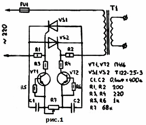 Но схема с двумя тиристорами имеет огромный недостаток, на который редко обращают внимание: импульсы на выходе всегда несимметричны. Они постепенно намагничивают железо, ухудшая его характеристики. На современном железе и элементной базе этот эффект заметно снижается, но полностью не исчезает.