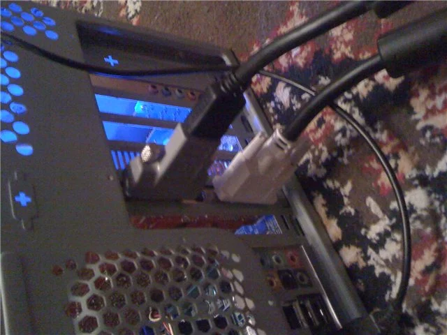 И вот что я заметил что если я включаю её через DVI выход, монитор включается с горем пополам , если я подключаю через переходник классический синий, монитор не включается. Если сначала запустить монитор через DVI и через минуту (конечно выключив комп) подключить синий коннектор, то монитор включается.