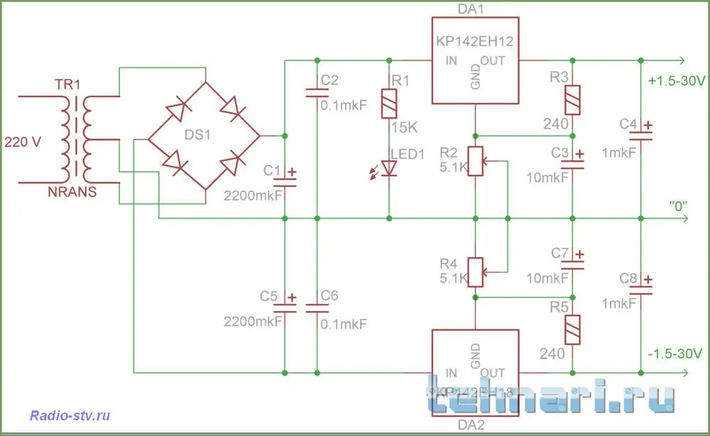 Решил собрать двухполярный бп, и столкнулся с проблемкой. Не понятно как включать в цепь переменные резисторы R2, R4. Так как намерен собирать все навесным монтажом, а у моих переменок 3 лапки, я не понял КУДА И КАКИМИ ЛАПАКАМИ нужно подпаяться.