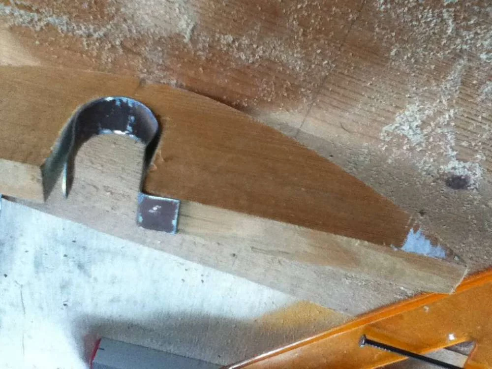 Придумал вот такое крепление(см. вложение). Прокомментируйте пожалуйста... (Металлические полоски будут крепиться гвоздём или саморезом в месте отгиба(снаружи))