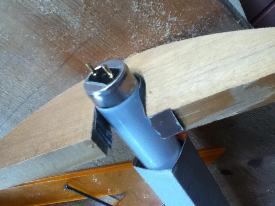 кстати лампы можно прикрепить скобами из проволоки (сталистой). На проволку в месте соприкосновения одевается ПВХ трубка. На концах проволки делаются петельки под шурупы.