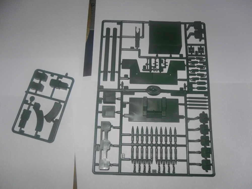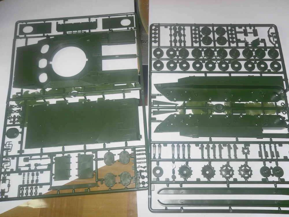 Модель довольно не плохая. Пластик фирмы "скиф", теперь в упаковке Um. на первый взгляд литье нормальное , утяжин и недоливов не выявлено. весь пластик зеленого цвета. только гуски сделаны из какой то резины.