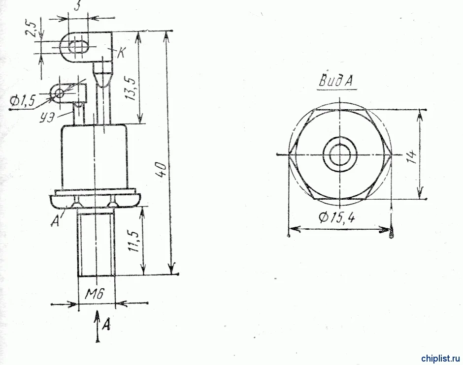 А тиристор я купил КУ103В1 - в пластиковом dip-8 корпусе. Цоколёвку вроде нашёл: