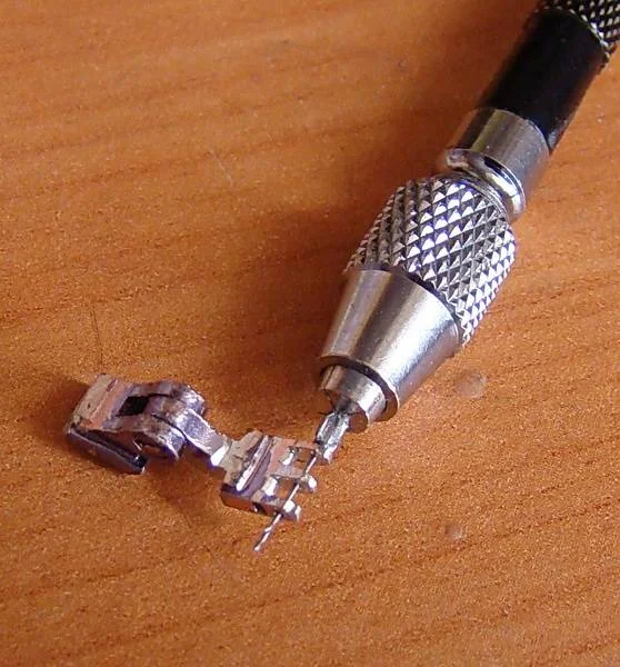 Юра, спасибо за совет, но колумбик затачивать не буду, пусть выполняет свою измерительную миссию. А для тонкого пластика и мелких диаметров очень хорош резак, выполненный из "балеринки" от чертежного набора, стоит только заточить подобно лезвию вторую иглу.