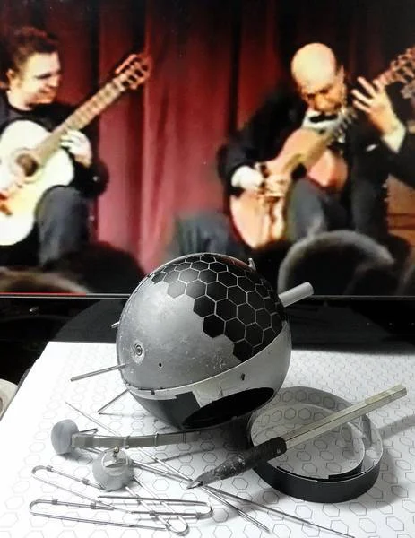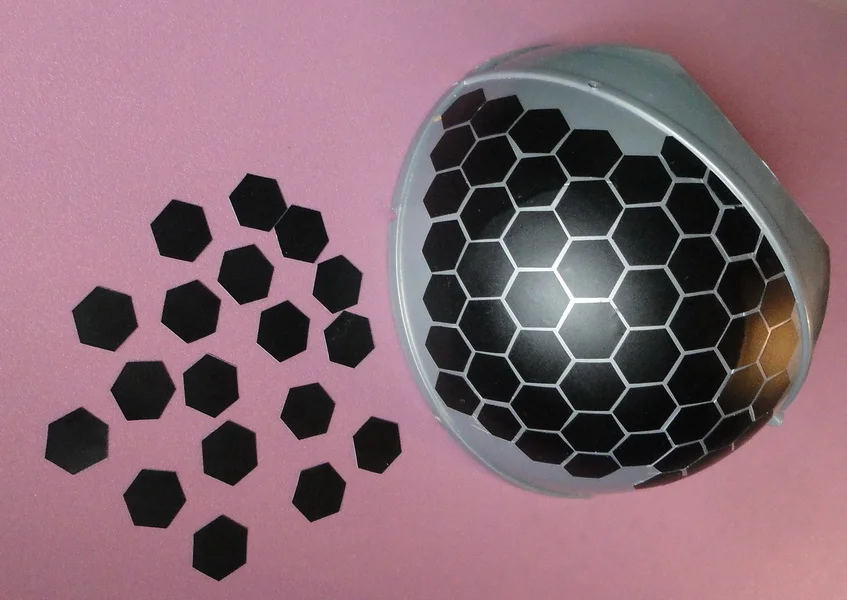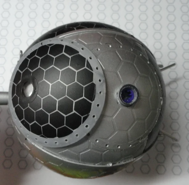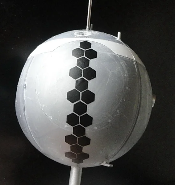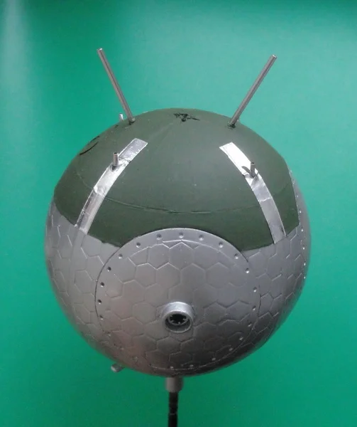 Всем большой привет! Вот и лето прошло, словно и не бывало, уже первые снежинки падают с неба, дачный сезон закрыт (Урожай при всей нынешней привередливости природы получился неплохой, зиму продержимся, а там ... снова лето ). А на сем-приступаем к работе. В течении прошедшего времени искал в сети дополнительные материалы по нашей космической программе, ну и кое-чего нарыл, что заставляет приложиться ручками к уже сделанному еще раз. Выяснил, как все-таки выглядел спускаемый аппарат КК "Восток-1", какого размера были шестигранники теплозащиты, где располагался экран из листового алюминия, ну и еще кое-чего, по мелочам. В первую очередь -поменял размеры шестигранников теплозащиты. И если раньше рисовал их при помощи трафарета на студенческой линейке, то сейчас призвал на помощь ПК и распечатал на лист пленки с клеящим слоем с последующей вырезкой ножницами. Получилось несколько точнее и одинакового размера, т.к. раньше при продолжительной эксплуатации края у трафарета поизносились и шестигранники были не совсем точными. Для пробы снял с люка прежнее покрытие, наклеил новое. Результат сравнения виден на снимке. Все получилось. А раз так, то под веселые гитарные переборы с неувядающей "Цыганочкой"- вперед и с песней ( ..эх раз, да еще раз, да еще много-много раз..)на зачистку корпуса спускаемого аппарата от прежних наслоений. Как говорится " Через тернии- к звездам".