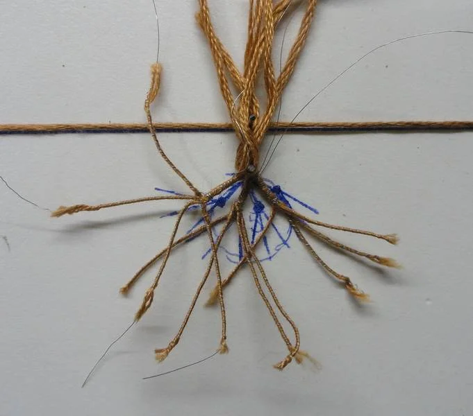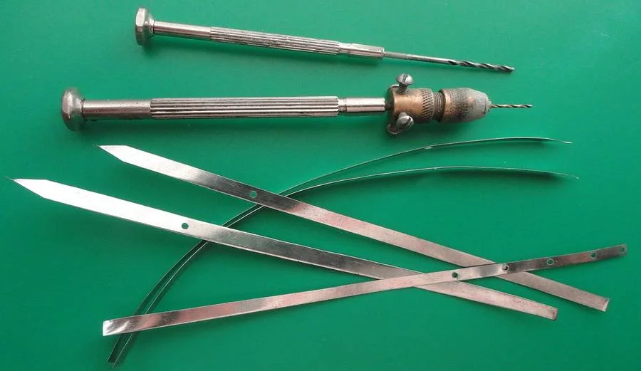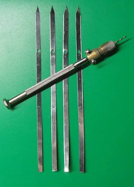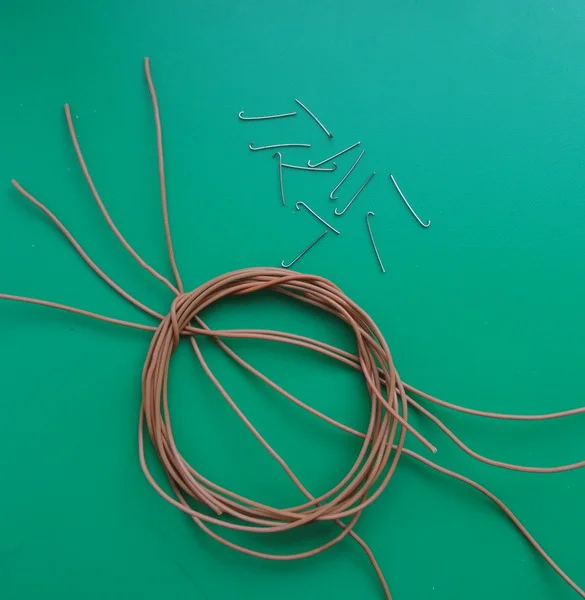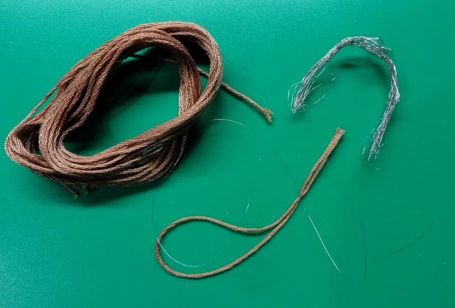 Продолжаем конверсировать корпус приборного отсека модели КК "Восток-1" от модельной фирмы REVELL. Думал вначале, что соберу "из коробки" , и делу конец. Но что-то с концом и "изкоробочным" вариантом не получается, хочется сделать достойную нашей науки и техники модель, а поэтому разглядывая снимки КК из музеев буду делать, по мере своих сил, способностей и возможностей, модель похожую на реальный корабль. Так усмотрев на приборном отсеке на нижнем конусе между жалюзями системы терморегулирования проводку фидеров к антеннам и кабели наружной электропроводки я повторил их на модели, выполнив из проводника в цветной ПХВ-изоляции, взятого из сетевого кабеля компьютера.Проводники закрепил на корпусе при помощи супер-клея скобками, выполненными из проволоки Ф 0.4мм. Теперь необходимо изготовить электропроводку на верхнем конусе приборного отсека. К панелям, представляющих собой диски с большим числом разъемов ШР подходит большой пучок кабелей. На некоторых снимках КК из музеев эти панели закрыты колпаками, их было бы изготовить проще простого, но на реальном КК "Восток-1" панели были открыты и весь этот букет кабелей необходимо повторить.В данном случае проводники с оплеткой их ПХВ не пройдут из-за размеров общего пучка -а проводников набирается до 16 шт на одну панель. Пришлось вспомнить техпроцесс вязки жгутов на шаблоне. Расчертил на куске пластика шаблон, в нужных местах воткнул шпильки. В качестве материала, иммитирующего электропроводку взял нитки "Мулинэ", применяющиеся для вышивки (выпросил у супруги). Для закрепления жгута при его вязке использую тонкую проволоку Ф 0,1мм от экранной обмотки сетевого кабеля.Она эластична, легко деформируется, вяжется в узлы и при этом относительно прочна. Согласно схемы жгута навиваю заготовки (работа кропотливая и муторная, но что поделаешь-охота пуще неволи), чтобы позднее объединить их в общий жгут, который затем можно будет уложить на корпус приборного отсека и распределить все проводнички по разъемам ШР .