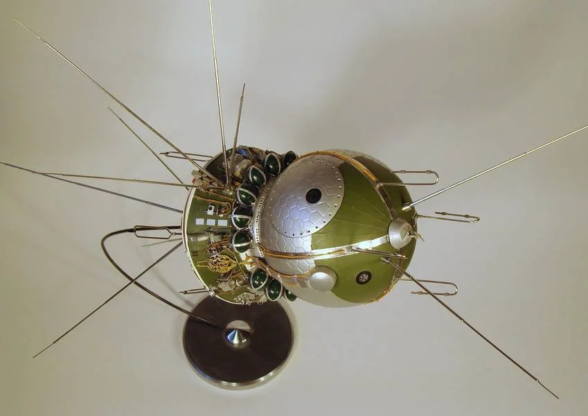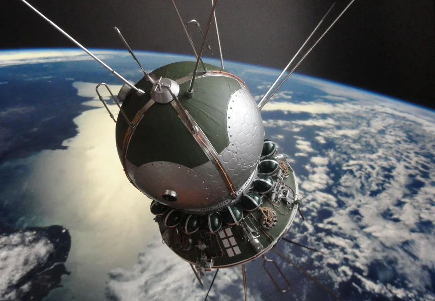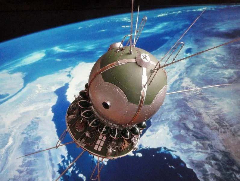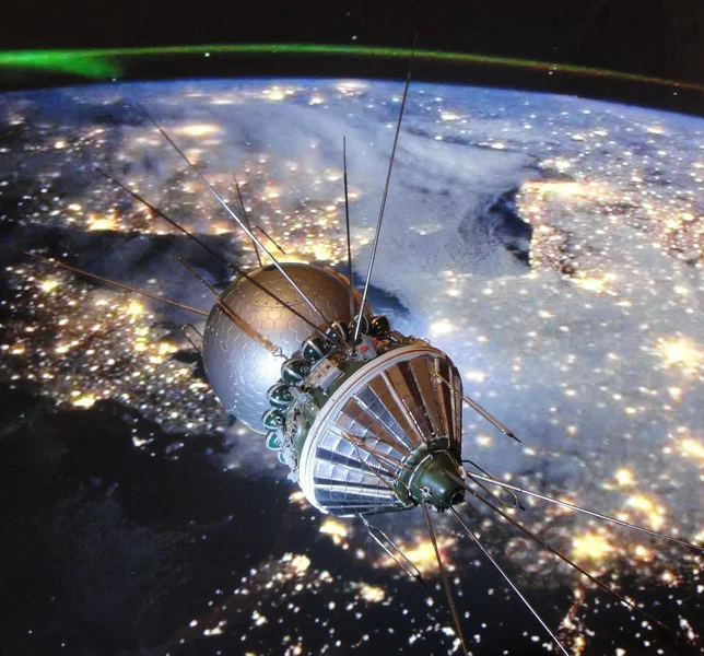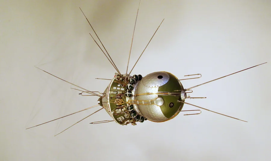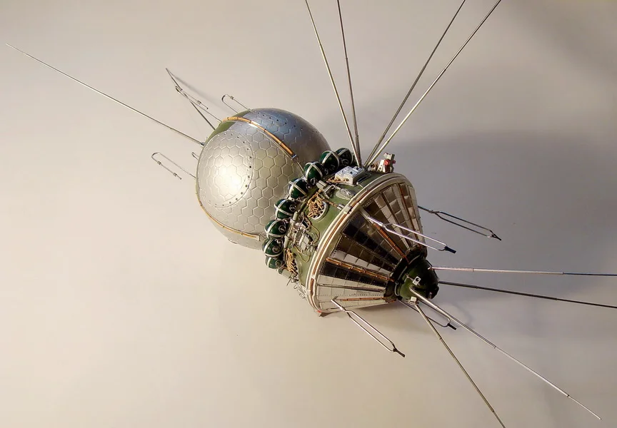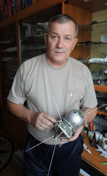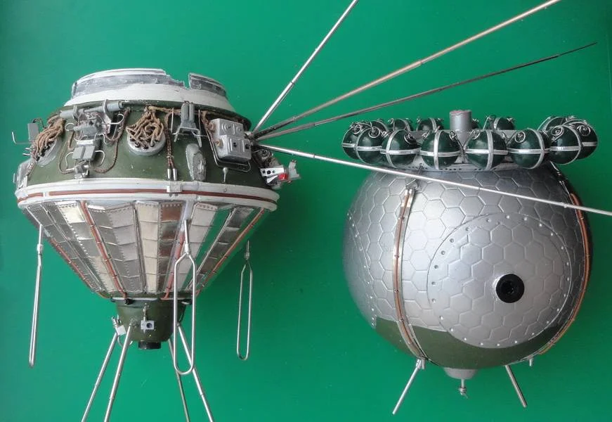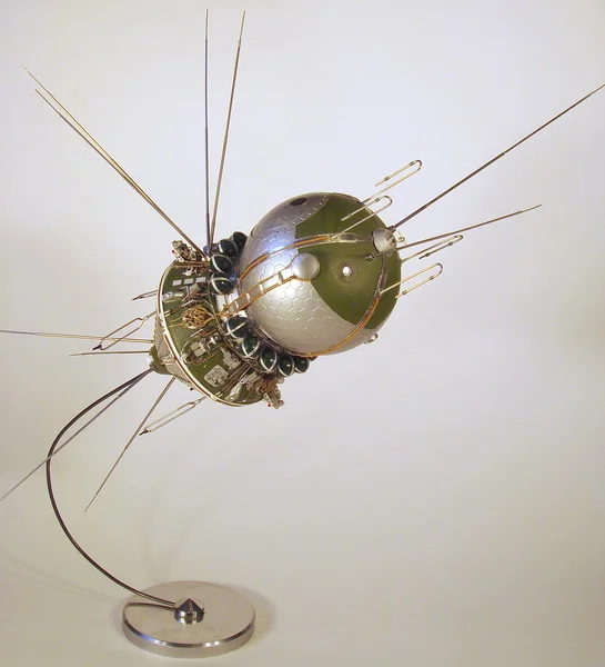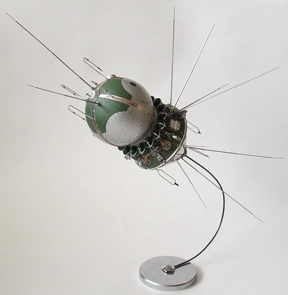 Работа над моделью КК "Восток-1" в режиме орбитального полета закончена. Вот такой кораблик получился небольшой , умещается на ладони руки, только антенны торчат в разные стороны, как иголки у морского ежа. На предыдущих фото он снят как бы в полете на фоне Земли, а на данных снимках- на подставке.