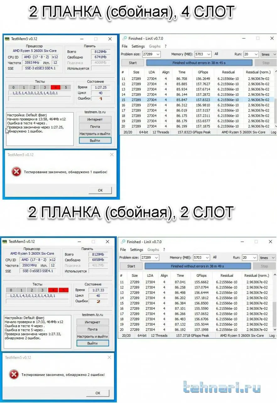 Проблема в том, что в течении 4 месяцев, ни тм5, ни прайм95, ни мт64 не проходят тесты на одной из планок этого кита.А в чем тут проблема кстати, в чем реально выражается?