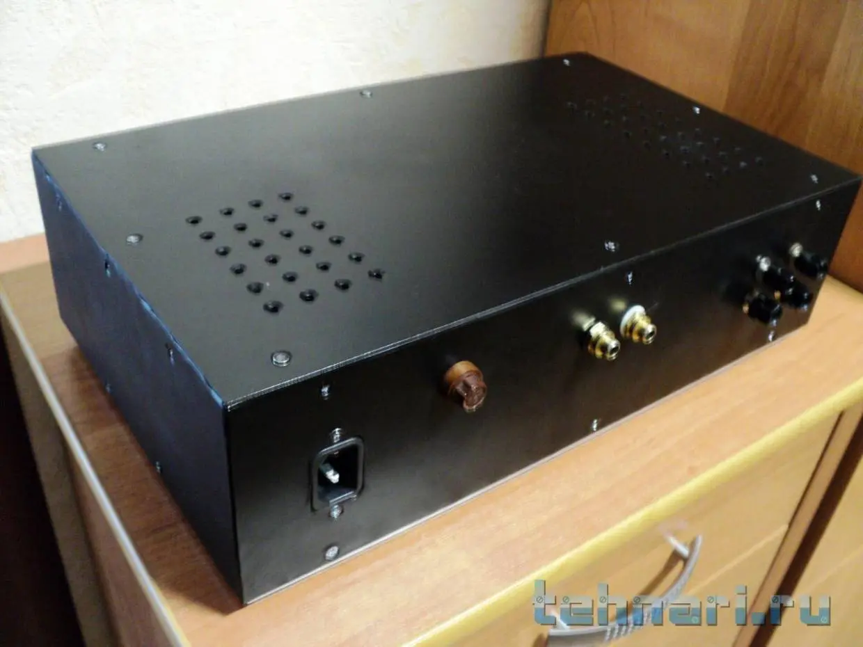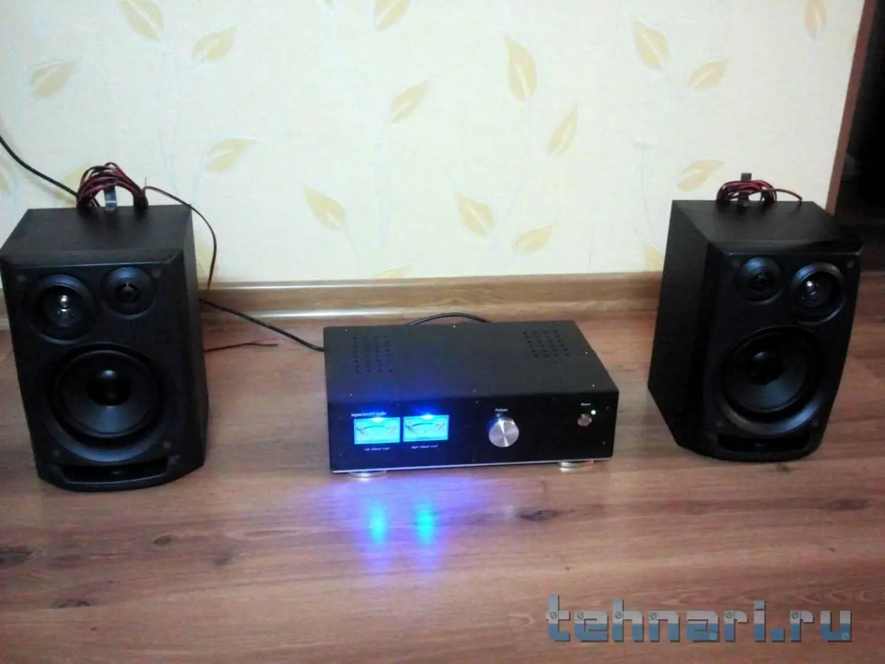 Вот, добил наконец-то усилитель. Собран на 2-х ТДА2050 по даташитовской схеме с изменениями, рекомендованными уважаемым Azziop-ом. Колонки:20 лет, от МЦ AIWA. Выкинул из них пьезопищалки, купил какие-то твитеры MYSTERY и посадил вместо пищалок. Промазал все щели силиконовым герметиком. Вату и прочее внутрь не пихал. Не являясь тонким аудиофилом,скажу-на мой вкус звук-вполне ДЛЯ МЕНЯ приличный получился.