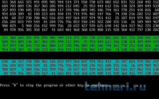 Ввести массив из n чисел, разбить массив на две примерно равные части и вывести числа из каждой части в отдельном окне, получив два окна с элементами; окончание работы программы при нажатии на клавишу «B»(CRT)