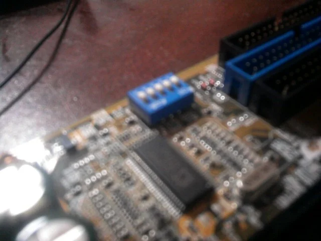 Ну,уже 10 лет ей,как минимум. Эта панель выключателей скорее всего отвечает за выставление нужной частоты системной шины(66,100 или 133Мгц),и значения множителя процессора. Если мануала нет,возьми увеличительное стекло,и рассмотри всю плату. Где - то наверняка на ней нарисована небольшая табличка соответствия,скорее всего около процессорного сокета.