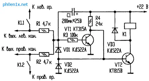 Уважаемые технари. Имеется две изготовленные платы по стандартным схемам печатных плат автора, блок питания на основе тороидального трансформатора на 250VА. Предварительный усилитель с темброблоком возьму из "Электроники УК-043". Хочется все это устроить в корпусе "Радиотехники М201", оставив блок индикации для выходного сигнала, и изготовить устройство задержки и защиты АС по ниже приведенной схеме. Посоветуйте, пожалуйста, как все это правильно сделать.