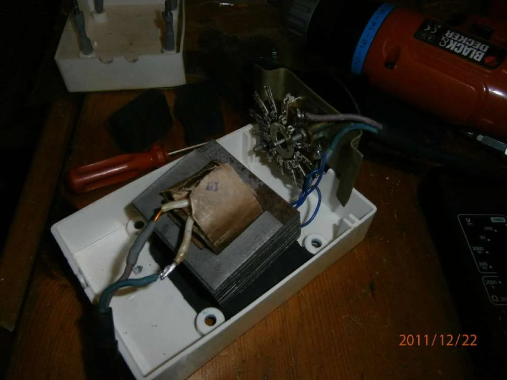 Здравствуйте друзья! небольшое предисловие: придя работать в школу трудовиком мастерская встретила меня разрухой, хаосом и полным отсутсвием рабочих инструментов. Я не стал горевать по этому поводу, "починю" подумал я. в недавнем времени я добрался до горы разломанных выжигательных аппаратов: 5 "контуров" и 1 "узор". у некоторых были оторваны провода, разбиты корпуса и много чего еще. наже представлены фотографии этих приборов. на "контурах" есть странный регулятор температуры, какая то пластиночка которая вставлена в трансформатор. попытка приклеить ручку обратно не увенчалась успехом, эта пластинка нереально туго ходит в разрезе трансформатора. в "узоре" стоит обычный переменный резистор, измерения показали что он где то на 420 кОм. Мощность приборов где-то 15 Ватт, напряжение на вторичной обмотке (толстый провод) 1-3 вольта. Итак вопросы: