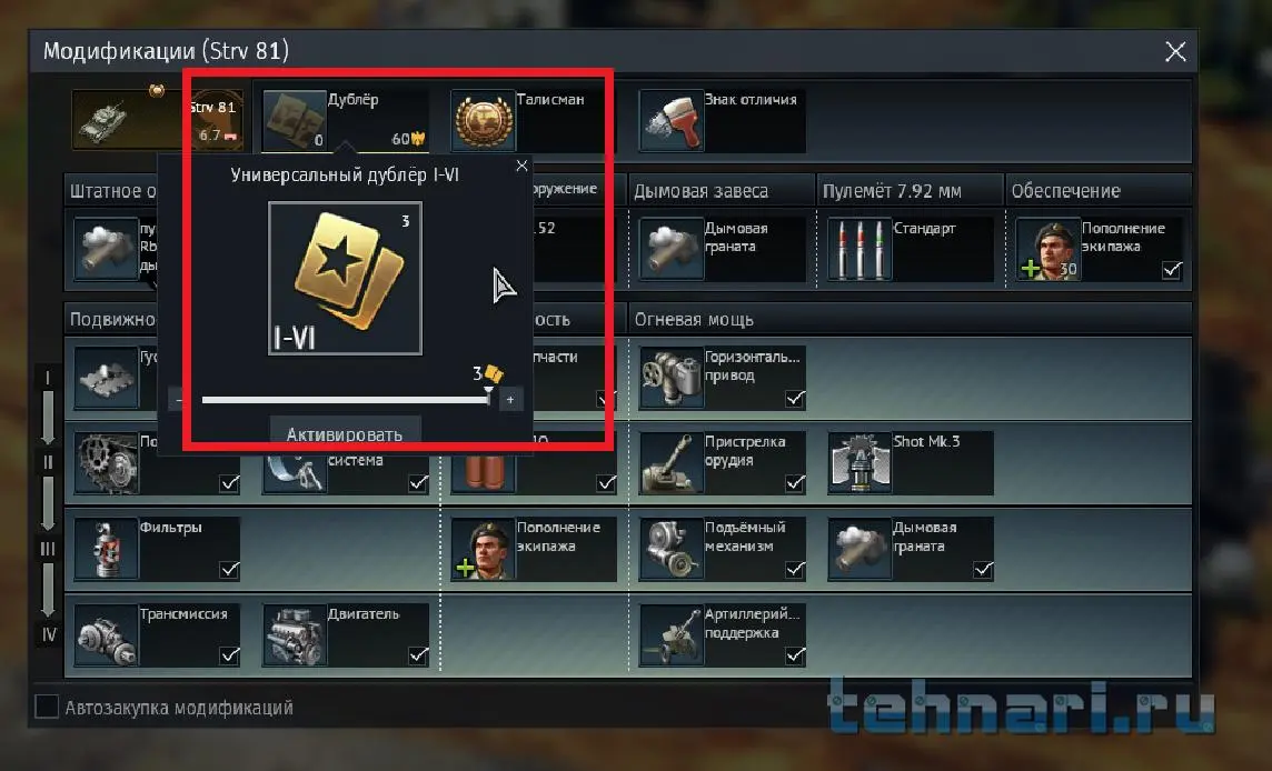 пакет с дублёрами берёшь , и на какой танк нужно ( определённый , на каком тебе прёт) , и в =модификации= , не покупаешь дублёр а активируешь из пакета который у тебя, и выбираешь сколько активироватьА какой принцип у универсального дублера?