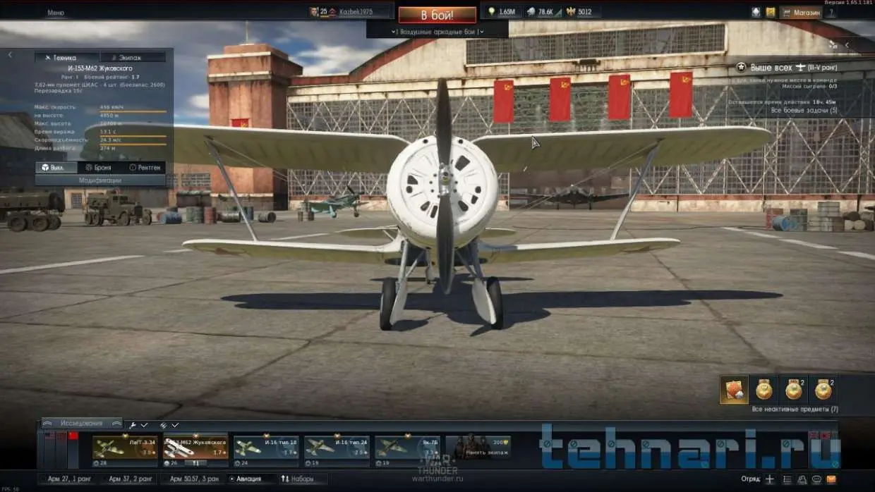 а до сих пор биплан с собой берёшь)) я понимаю что вираж у него на месте с разворота, но 3й ранг им не покачаешь, есть в премах И153П , но БР уже 3.7 и там пушкии 2,5 ранга в самолетах выкачать, думаю не плохой показатель )))