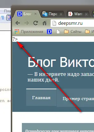 Сайт разворачивается, но в верхнем левом углу — ?>