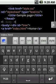 WebMaster's HTML Editor - мощный редактор с автодополнением кода. То есть можно не дописывать код, программа угадает и заполнит его за вас. (Правда пока много шибок, приложение только учится).