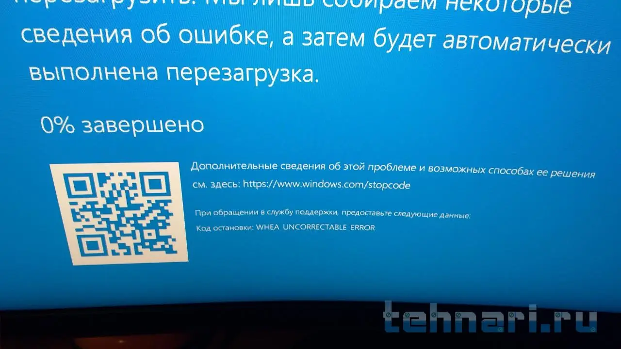 Компьютер зависает в 0 без возможности перезагрузки с синим экраном whea uncorrectable error, загрузка синьки висит в 0% и не продвигается дальше, кнопка перезагрузки не работает, только зажатие кнопки питания и полное выключение. После этого BSoDа при включении загорается подсветка системного блока, видеокарты, крутятся кулера НО не работает клавиатура, мышь и монитор (помогает отключение питания на некоторое время).