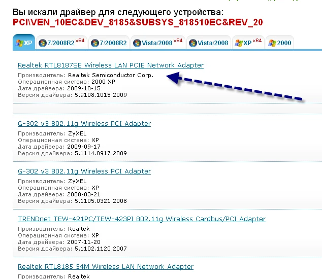 Найденный на DevID.info драйвер на подошел. Установка прошла без ошибок, но в ДУ так и стоит вопросительный знак.PCI\VEN_10EC&DEV_8185&SUBSYS_818510EC&REV_20