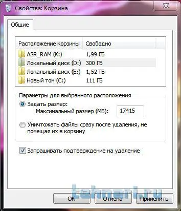Ну так на D тоже есть корзина? Сделай её размер "0" и все, не будет корзины на этом диске. Тли я не допонял проблему?