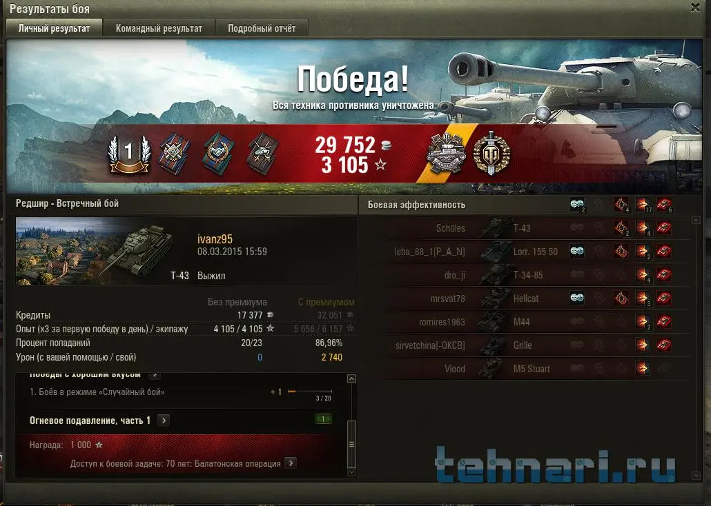 Спасибо, Дим, большое!Во, круто, поздравляю и со 140и с должностью! Наконец то у меня реальный шанс с 47процентами попасть в номральный клан!Бери нас двоих с Лехой, унего 53, у меня 47, витоге мы неплохо дополняем дрвгу друга в бою и получается 100процентов! С математикой не поспоришь.