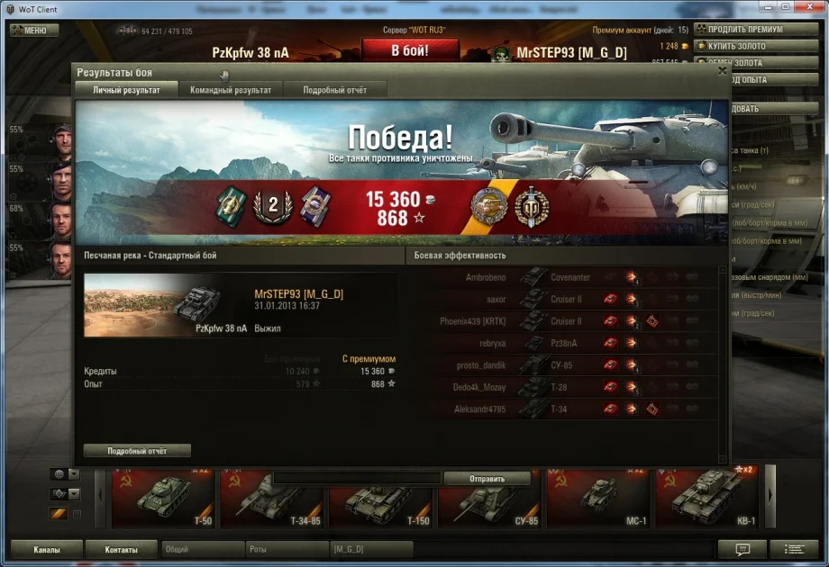 Ну коли на впечатления потянуло, расскажу про японца: машинка очень и очень занятная. Подвижность неплохая, но 54 все равно уступает. Брони нет, поэтому надеяться даже на маску не стоит (хотя иногда рикошеты и непробития проскакивают, ввиде приятного бонуса