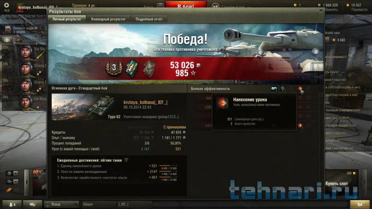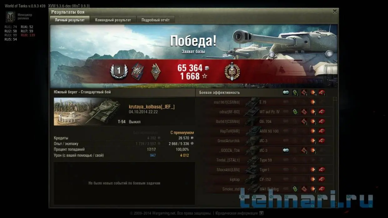 Норм бой, отстрелял хорошо. Денис, а зачем ты голдой бил в объекта 704? Он же боком к тебе был.Вчера опять первую степень получил на т-54, если бы не союзный Ис то скорее всего бы взял, как только не уговаривал и все ровно он взял базу