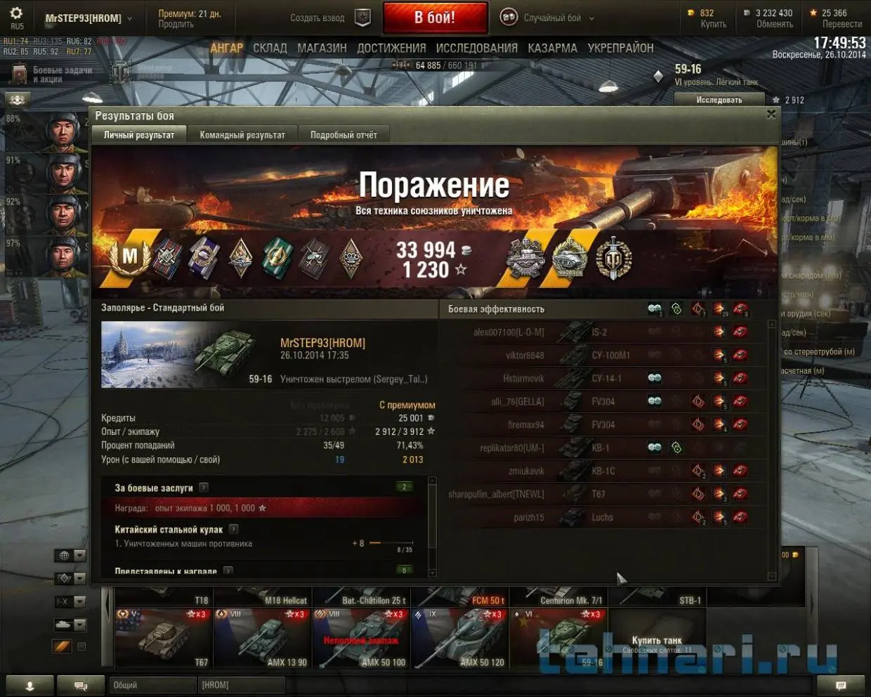 Купил по скидке китайского светляка, поставил топ-двигатель и поехал сбить здездочку. А сбил дыхание и сердечный ритм на полчаса. :D WoTReplays 59-16 MrSTEP93 Заполярье