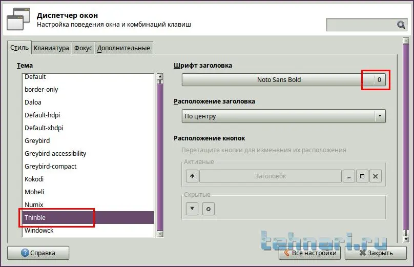 После в Настройки -- Диспетчер окон выбрать Thinble