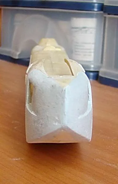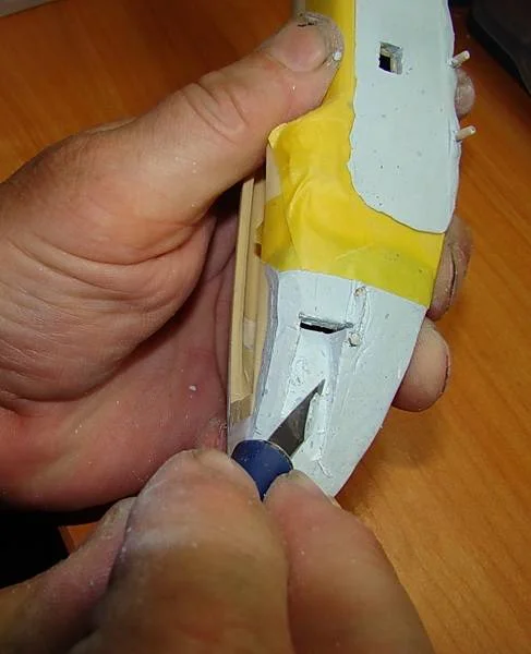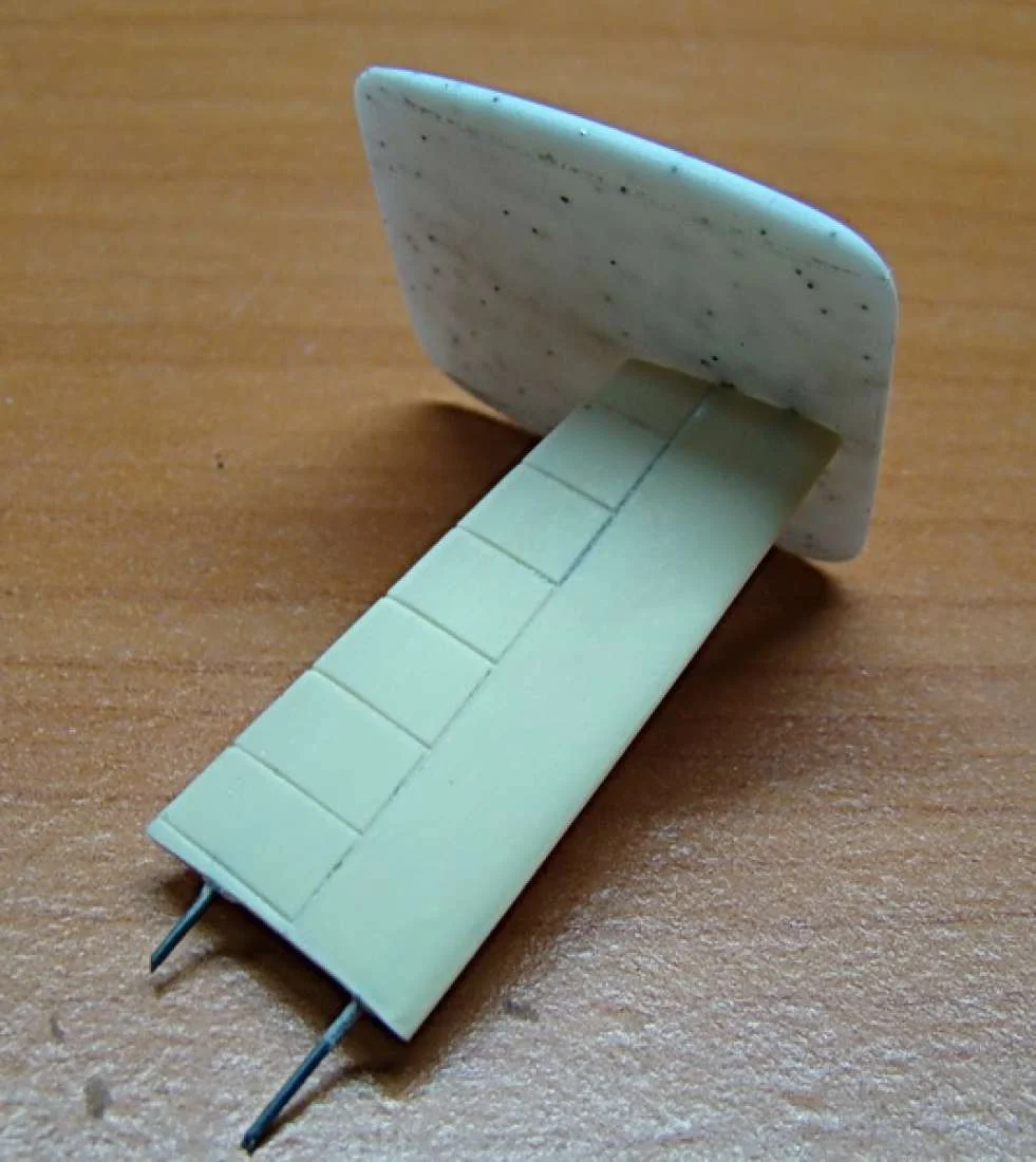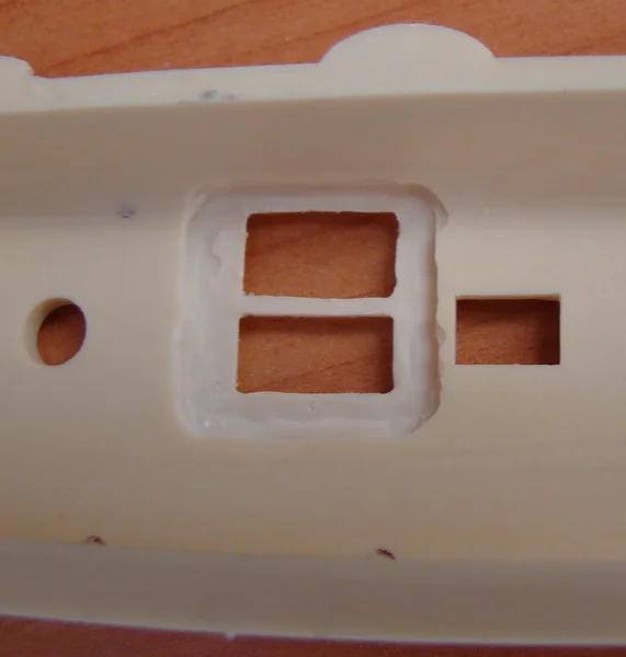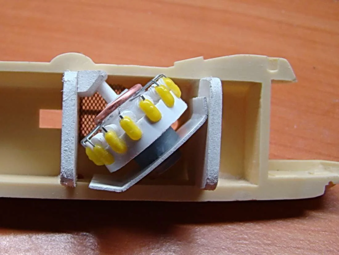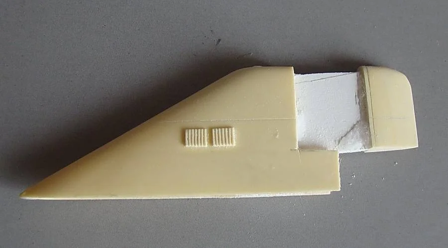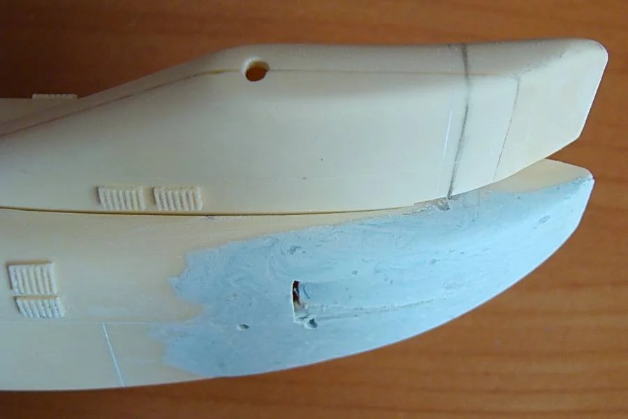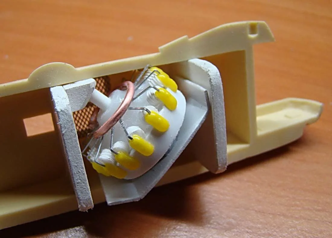 Рассматривая фото данного вертолета с № 35, я обратил внимание, что на одном из снимков хорошо просматривается днище фюзеляжа и его хвостовая часть не имеет характерного изогнутого окончания, хотя об этом изменении информации я так и не нашел. Везде пишут только о стабилизаторе и шайбах. Но если на фото данное изменение зафиксировано, то будем руководствоваться им.Добавится только объем конверсионной работы, но это даже интереснее. Для начала сделал то же, что и в предыдущей модели- прорезал отсутствующие окна охлаждения носового двигателя, установил в них решетки.