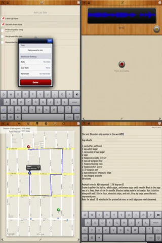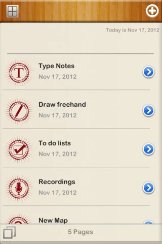 - возможность создавать страницы для текстовых записей, набросков и рисунков, звуковых записей и карт;
