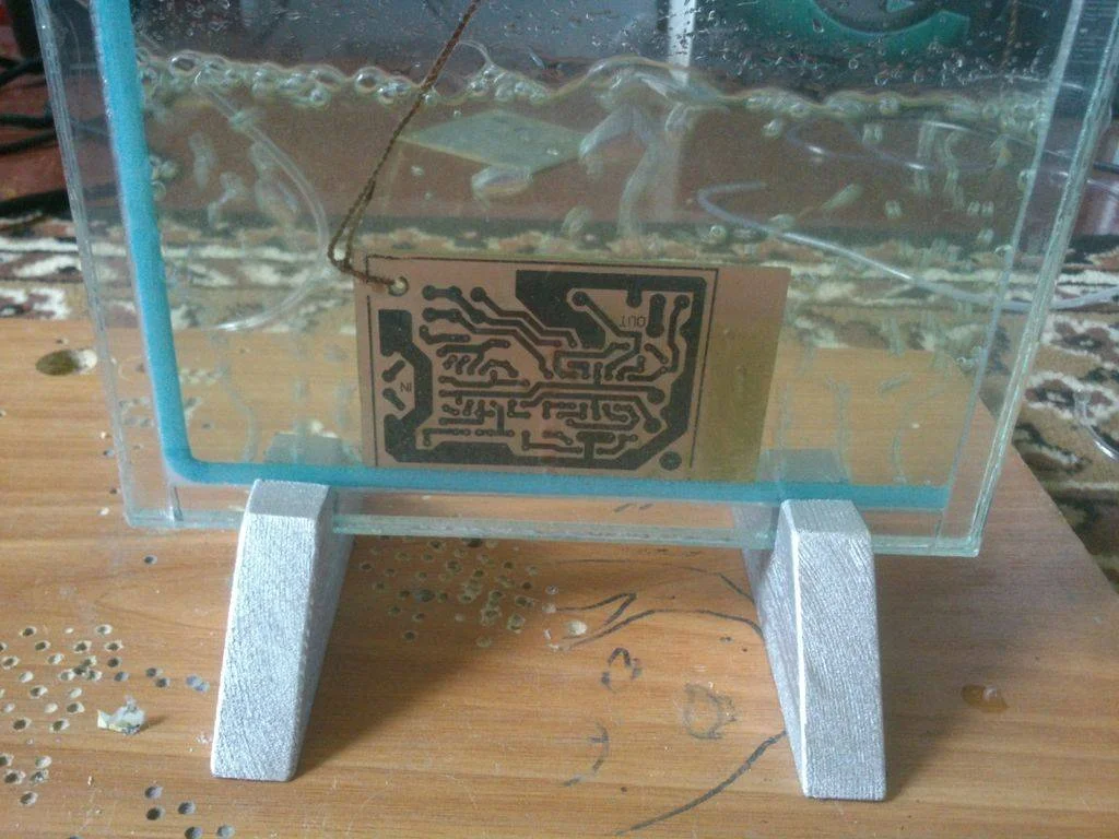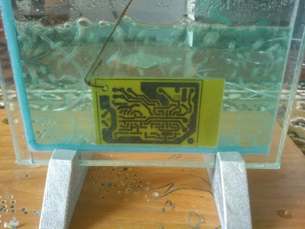В процессе этого травления выяснил что пузырьки играют большую роль в скорости травления а вот распределить их по всей емкости не получается, турбулентный поток все время собирает их или в бок (если завихрение идет по кругу) или собирается в общий пучок по центру (если завихрения расходятся от центра в стороны) Ну ничего, пойдёть :))