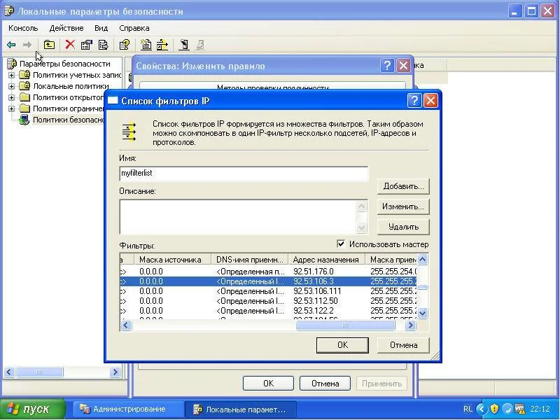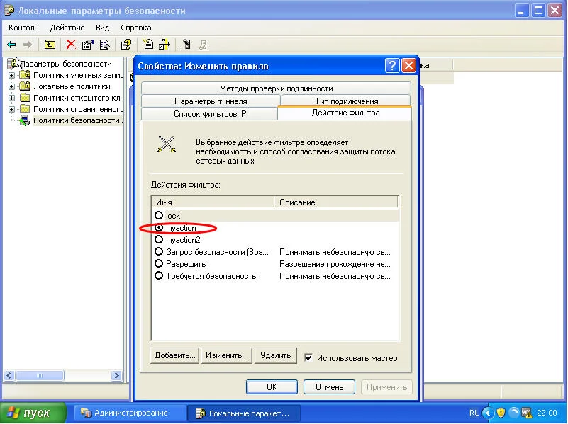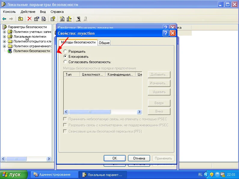 Проверяем политики безопасности IP: Заходим в администрирование, локальные параметры безопасности - политика безопасности IP.