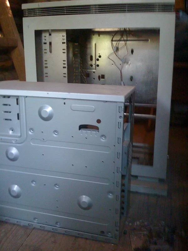 Есть у меня на переделку огроменный корпус серверный. С БП горячей замены на 400Вт, кучей места внутри и по всей морде 5.25 отсеки вертикально, штук 8 вроде... или 10, забыл, но не суть.