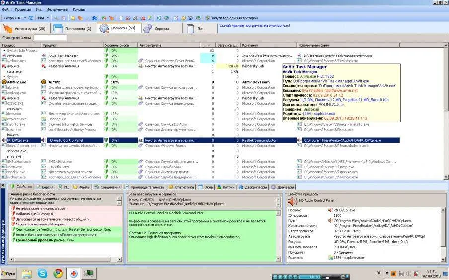 Посмотрите в трее когда Анвир менеджер запущен. Там есть значёк загрузги процесора. щелкните на него мышкой и посмотрите какие процесы на сколько грузят процесор. и отпишитесь какие именно и насколько?