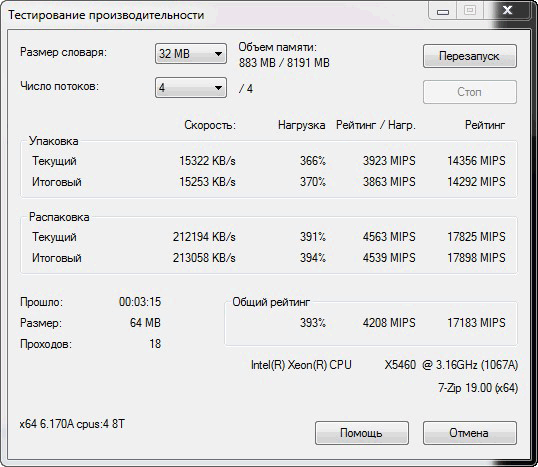 Вот сколько в 7zip этот ксеон даст цифорок? Можно сравнить с тормозным ноутом на и3-4030ю, нгутбучным.
