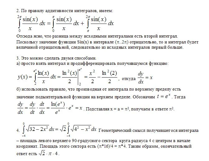 2. Задача решена абсолютно правильно. Просто Вам следовало написать, что второй интеграл ( от пи до 2пи) - отрицателен, отсюда и вывод. Задача свводится к сравнению выражений Х и Х+Y. Так вот, если Х>0, а Y<0, то X>(X+Y).